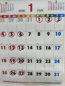 いよいよ年の瀬も近づいてまいりました。令和7年も多くの皆様にご来店いただきありがとうございました。今年の年末は31日まで営業(29日の月曜日はお休み)し、令和8年1月1日〜6日火曜日までお正月のお休みとさせていただきます。新年は7日水曜日からの営業となります、何卒よろしくおねがいします。インフルエンザの流行や飲み会の機会が多くなる時期ですので免疫を落とさないようくれぐれもお気をつけて乗り切ってください。